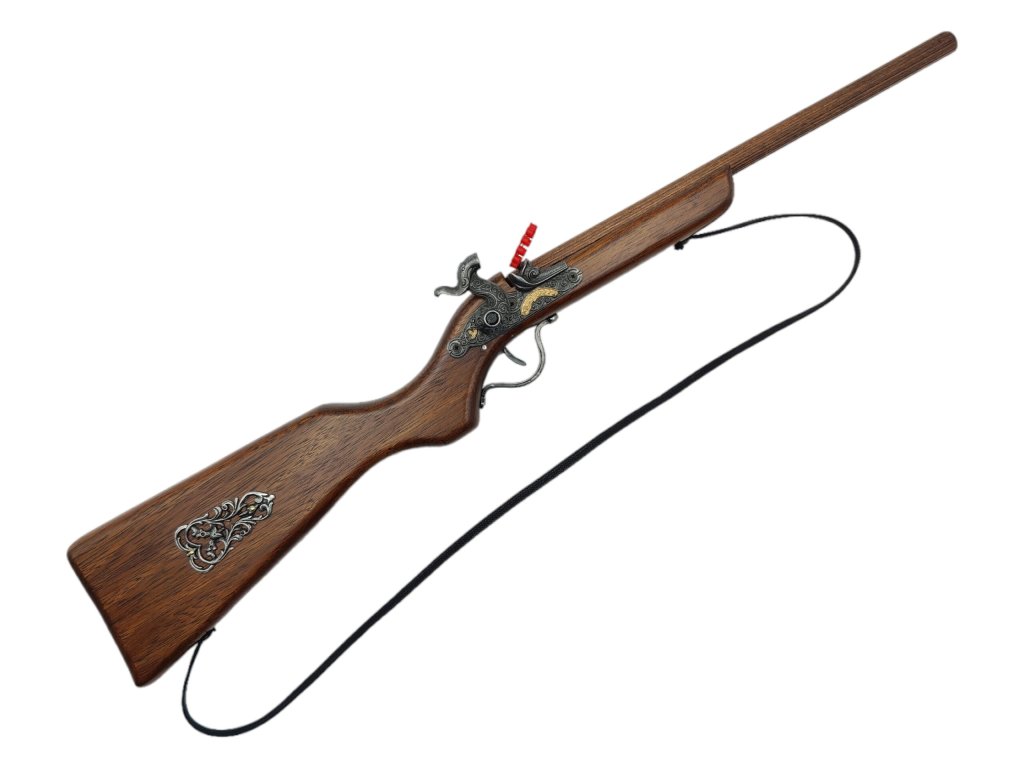 Dřevo je při výrobě pečlivě opracované – hrany jsou zakulacené a rukojeť hladká, takže puška dobře sedí v ruce a nikde nic netlačí. A díky poutku ji můžeš pohodlně nosit přes rameno – ideální na dětské hry, tematické akce, karnevaly nebo „historické bitvy“ na zahradě.