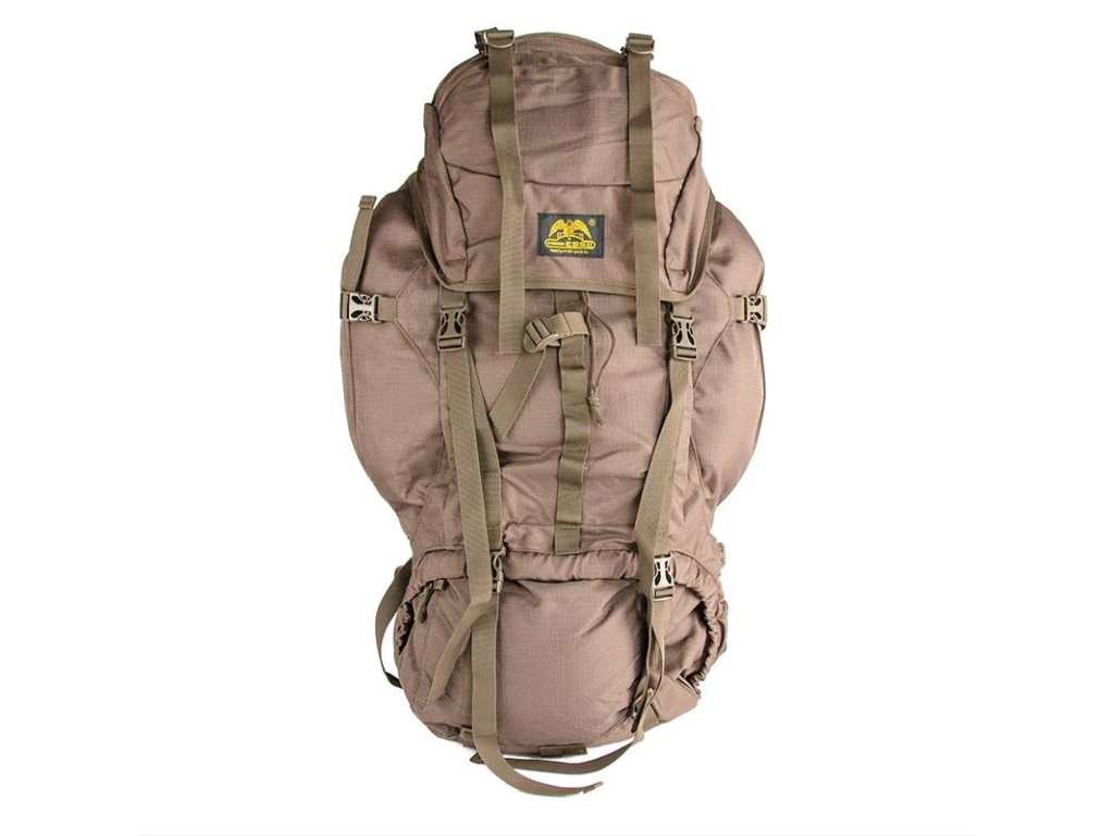 Turistický batoh-krosna o objemu 85 litrů. Batoh je vhodný pro vojenské a taktické použití.