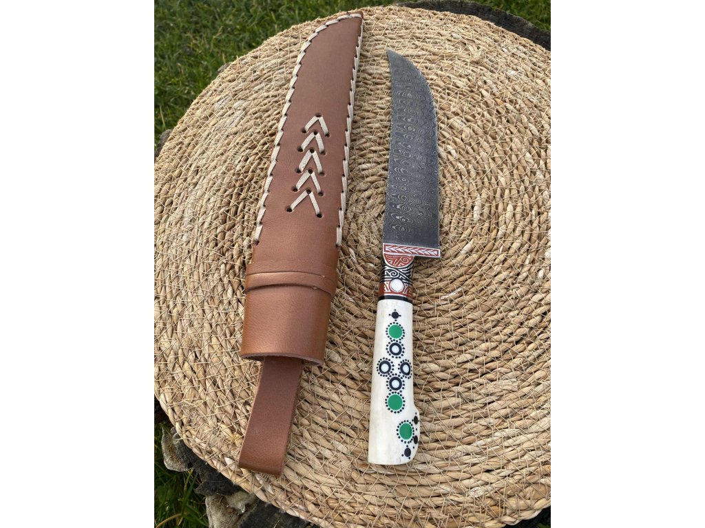 Uzbecký nůž Pčak – velbloudí kost & čepel z damaškové oceli